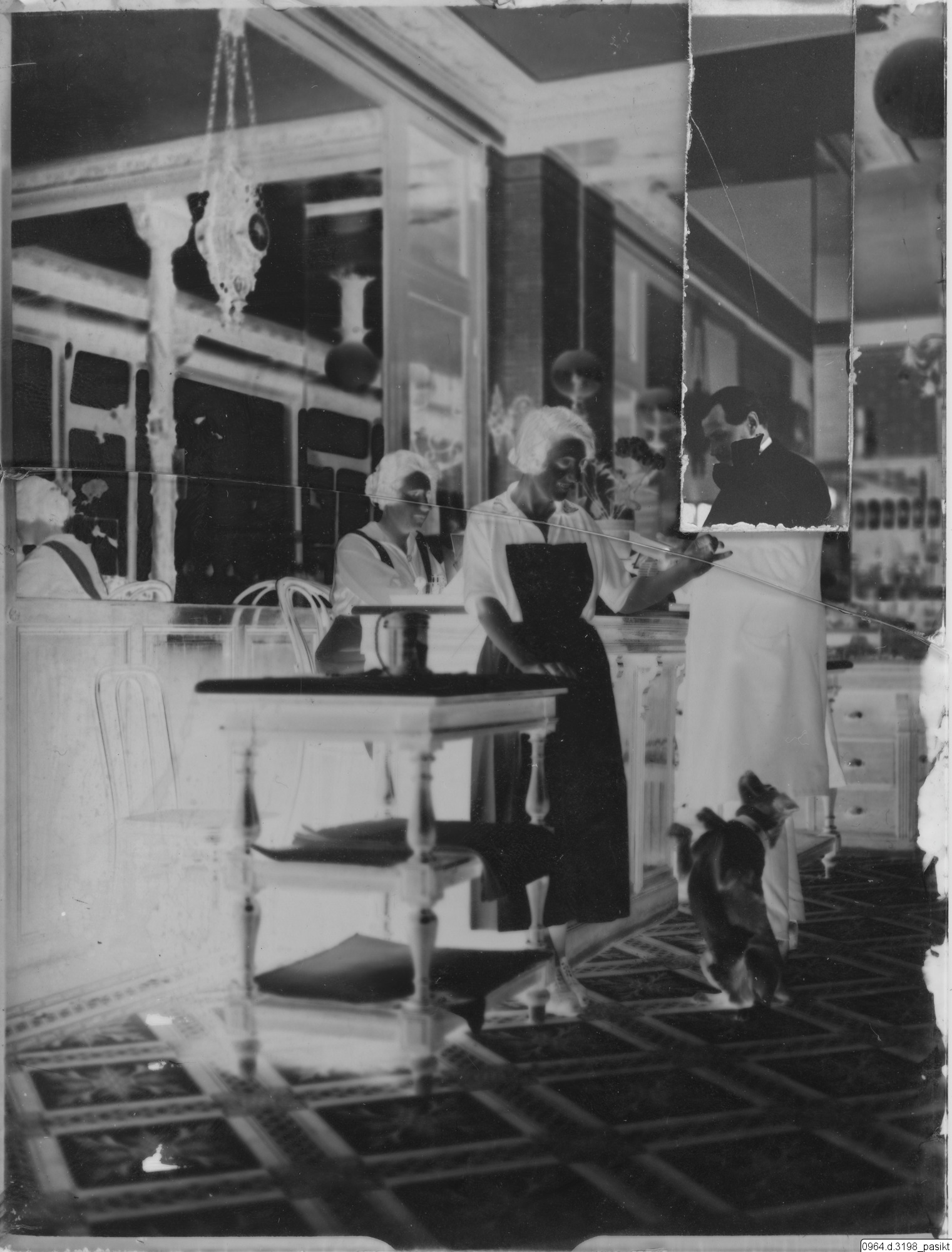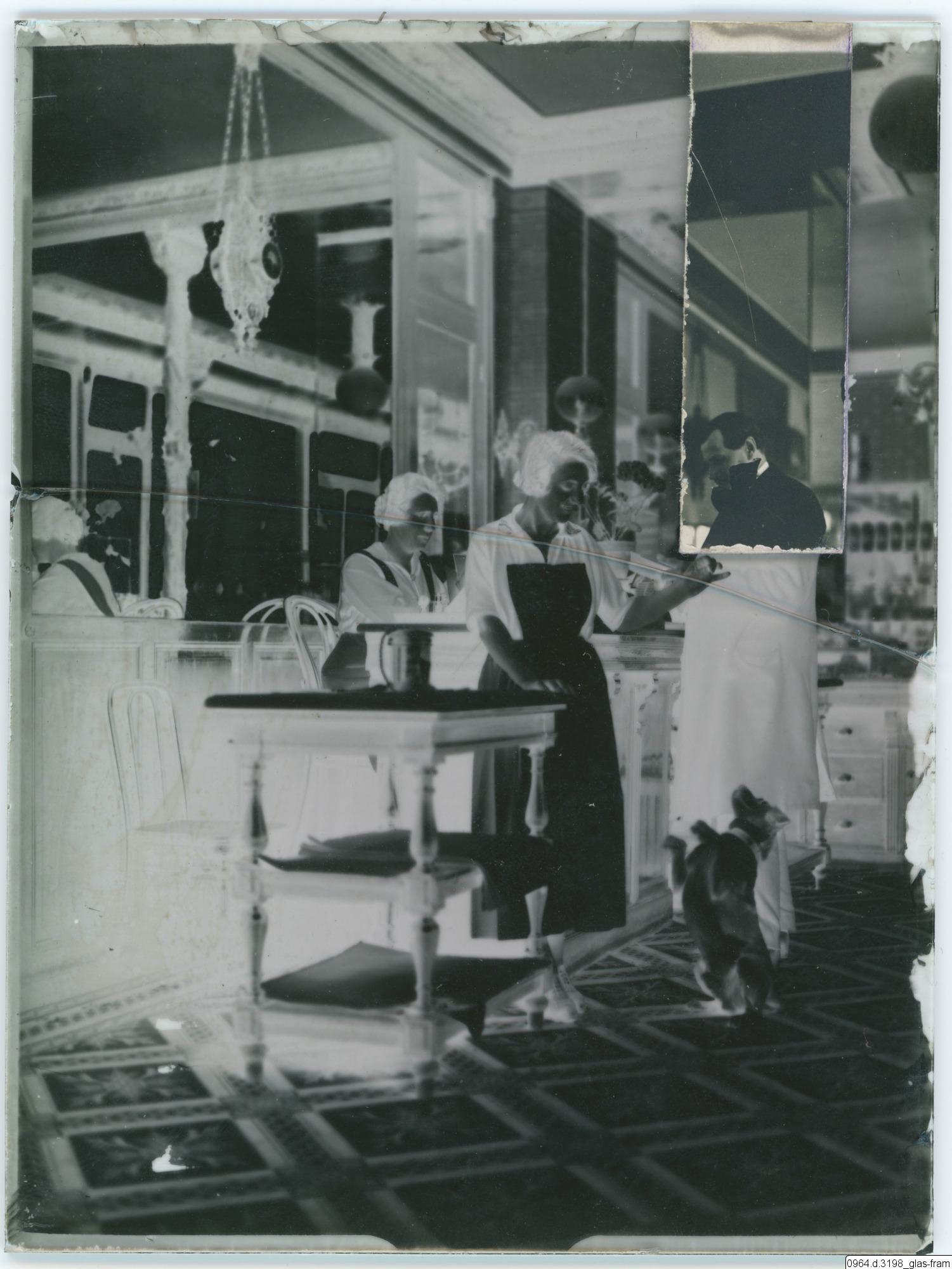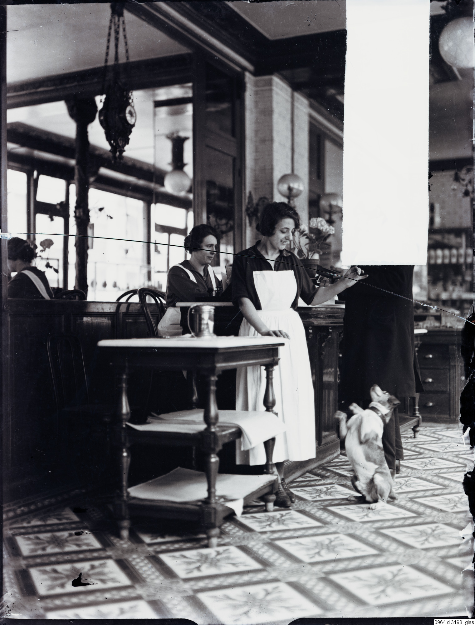 människor, hund, interiör, servitris, missionärer, restaurang, fotografi, photograph