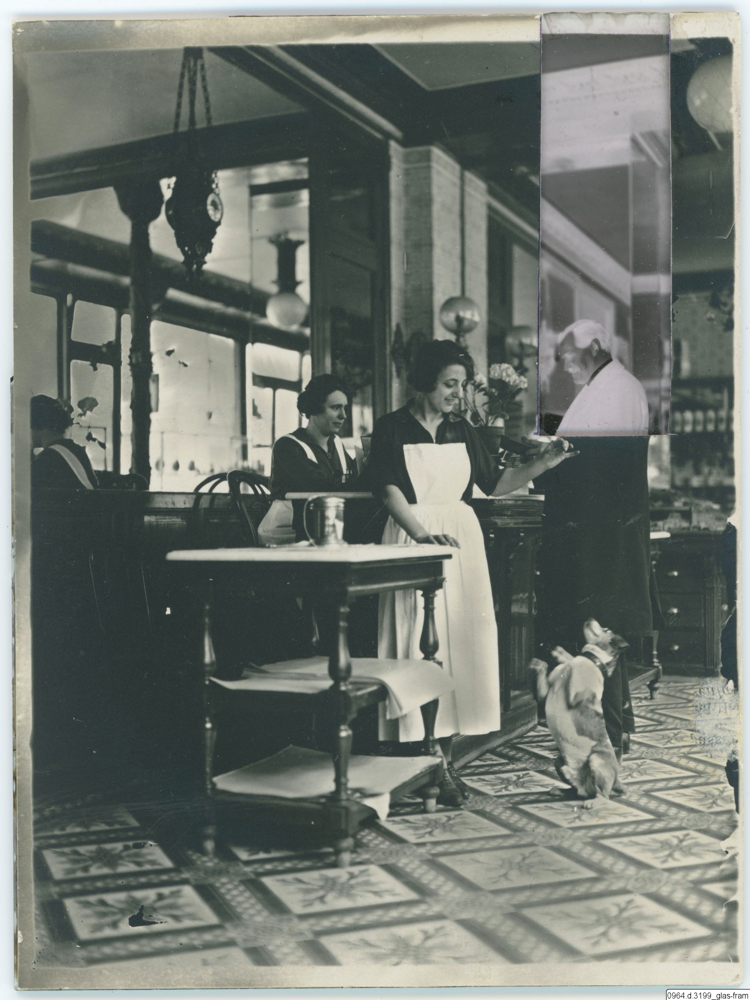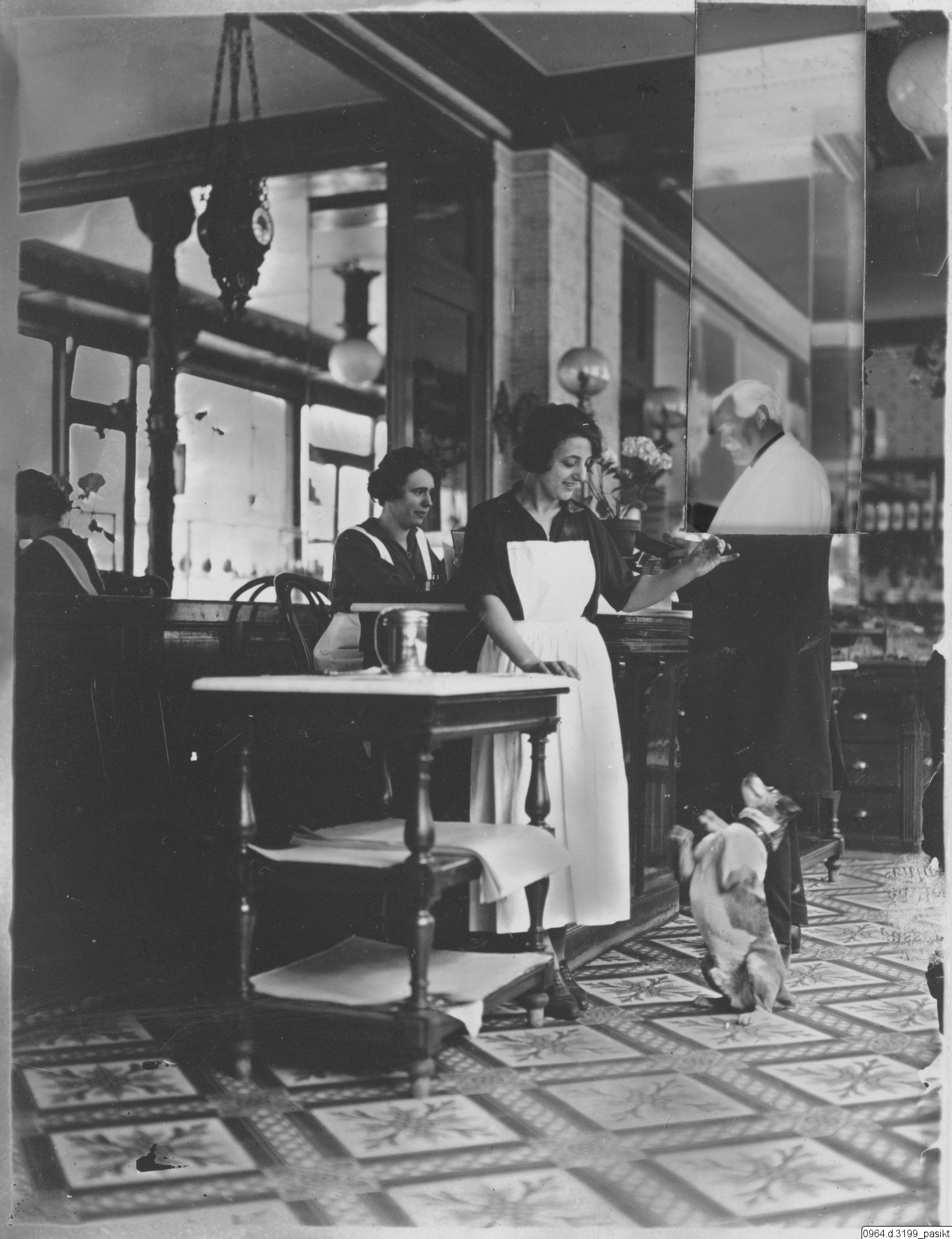 människor, hund, missionärer, restaurang, interiör, servitris, fotografi, photograph