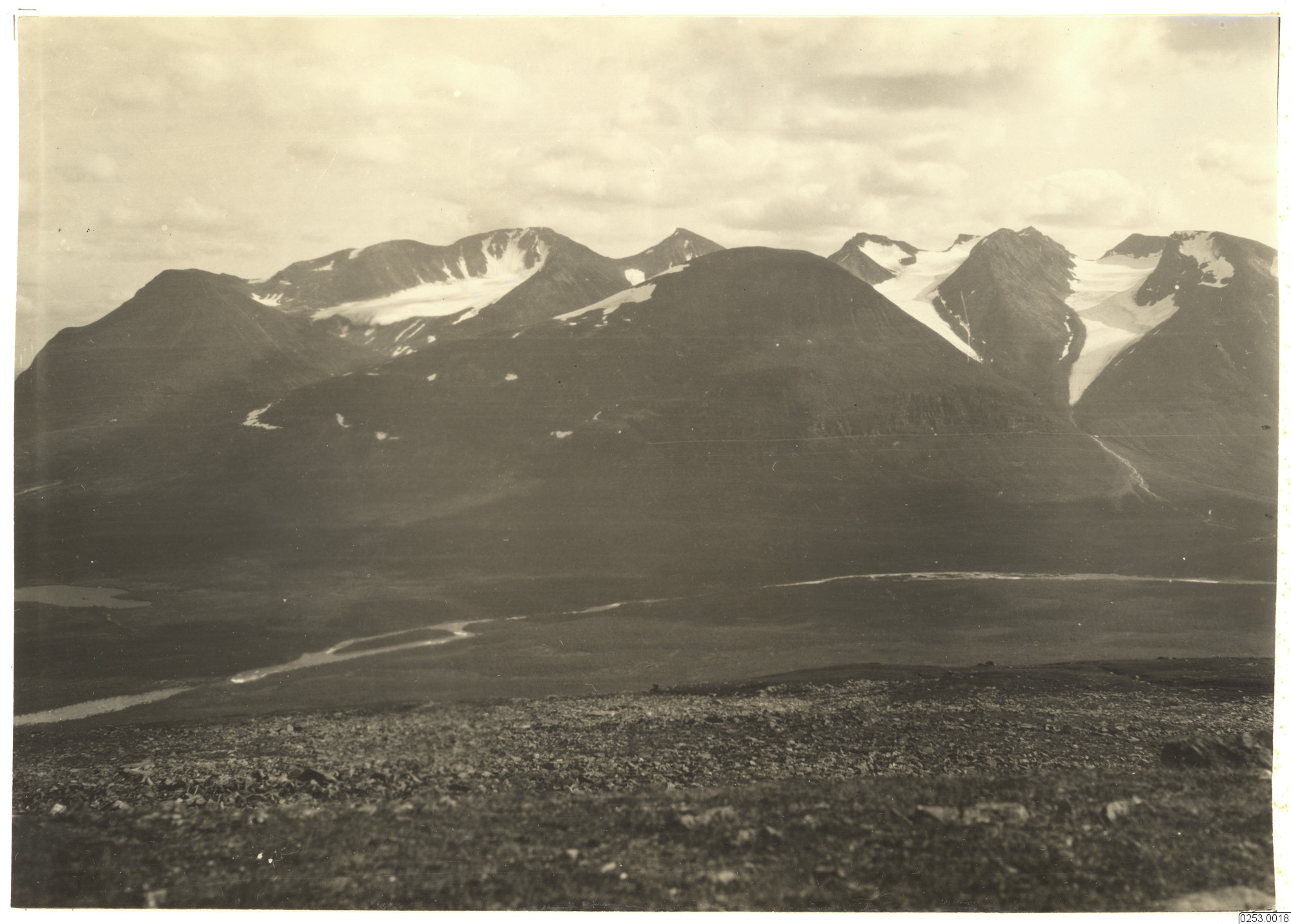 • Akkamassivet, sett från Pålnotjåkko. Akavare (akka). Jokkmokk s:n.