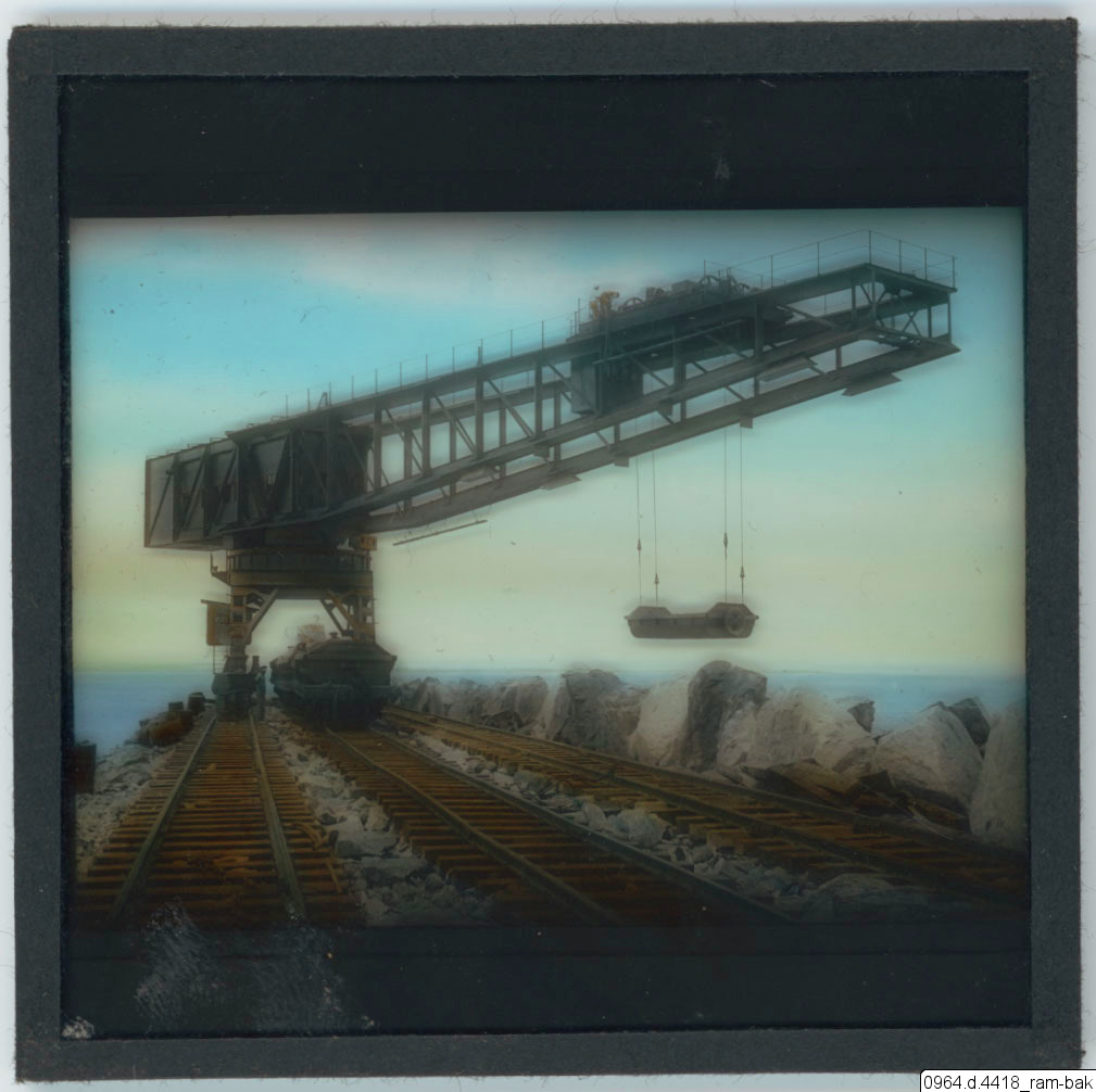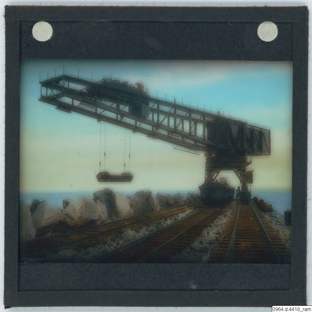 • Lyftkran på räls på en stenpir.