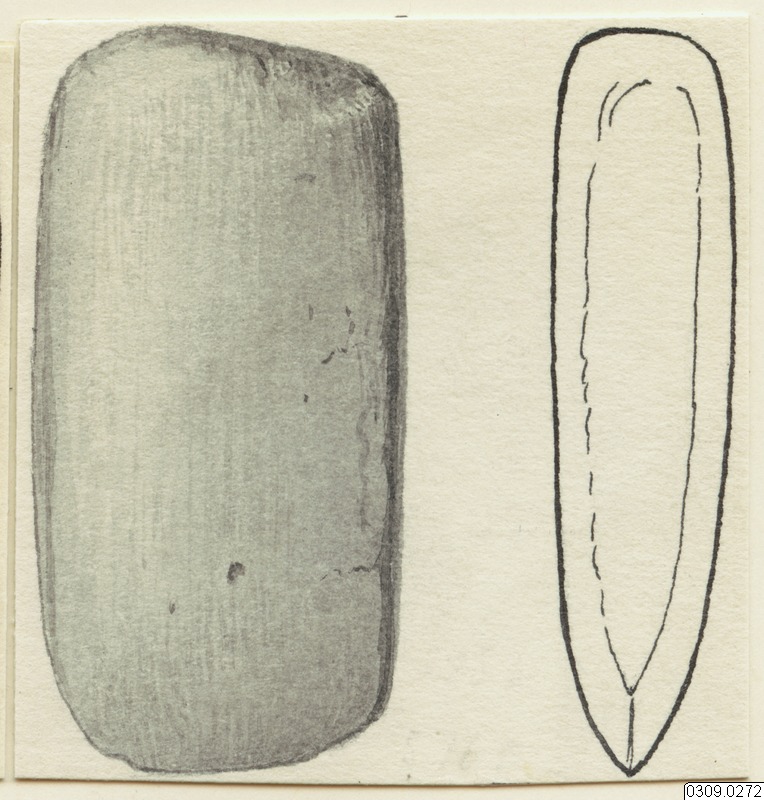 • Teckning av stenyxa. Linné, Archaeological Researches at Teotihuacan, Mexico, (1934). Fig. 256.