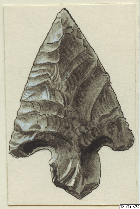 Pil- eller spjutspetsar av obsidian, vulkaniskt glas, Teotihuacan, México. Indianerna voro skickliga tillverkare av vapen, prydnader m.m. av sten, men märkligt är att spjutspetsarna från den äldsta jägarkulturen aldrig överträffades. Statens etnografiska museum.
