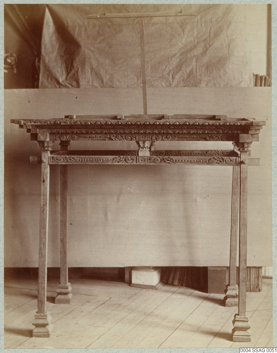 Modell av husstomme, Java, provinsen Japara, ur samling 189 (Riksmusei Etnografiska Samling, Stockholm). Föremålsbild tagen i samband med Allmänna etnografiska utställningen.