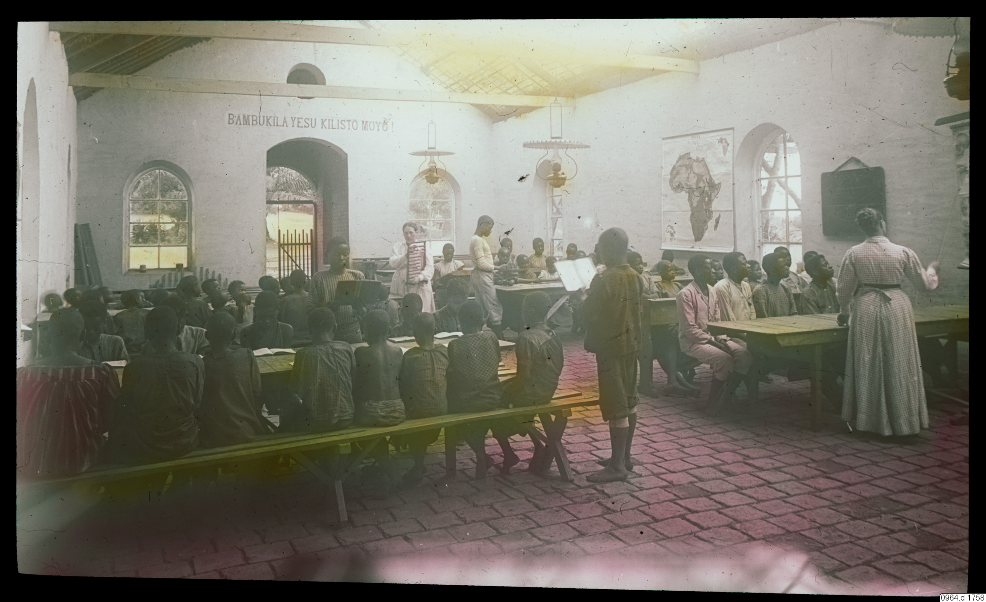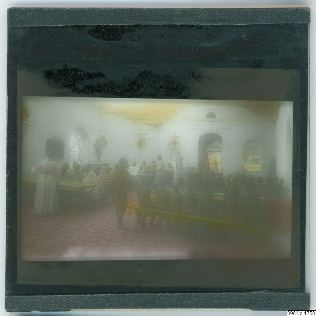 bänkar, planscher, elev, elever, lärare, kyrka, interiör, personer, lärarinna, skola, karta, lektion, fotografi, photograph