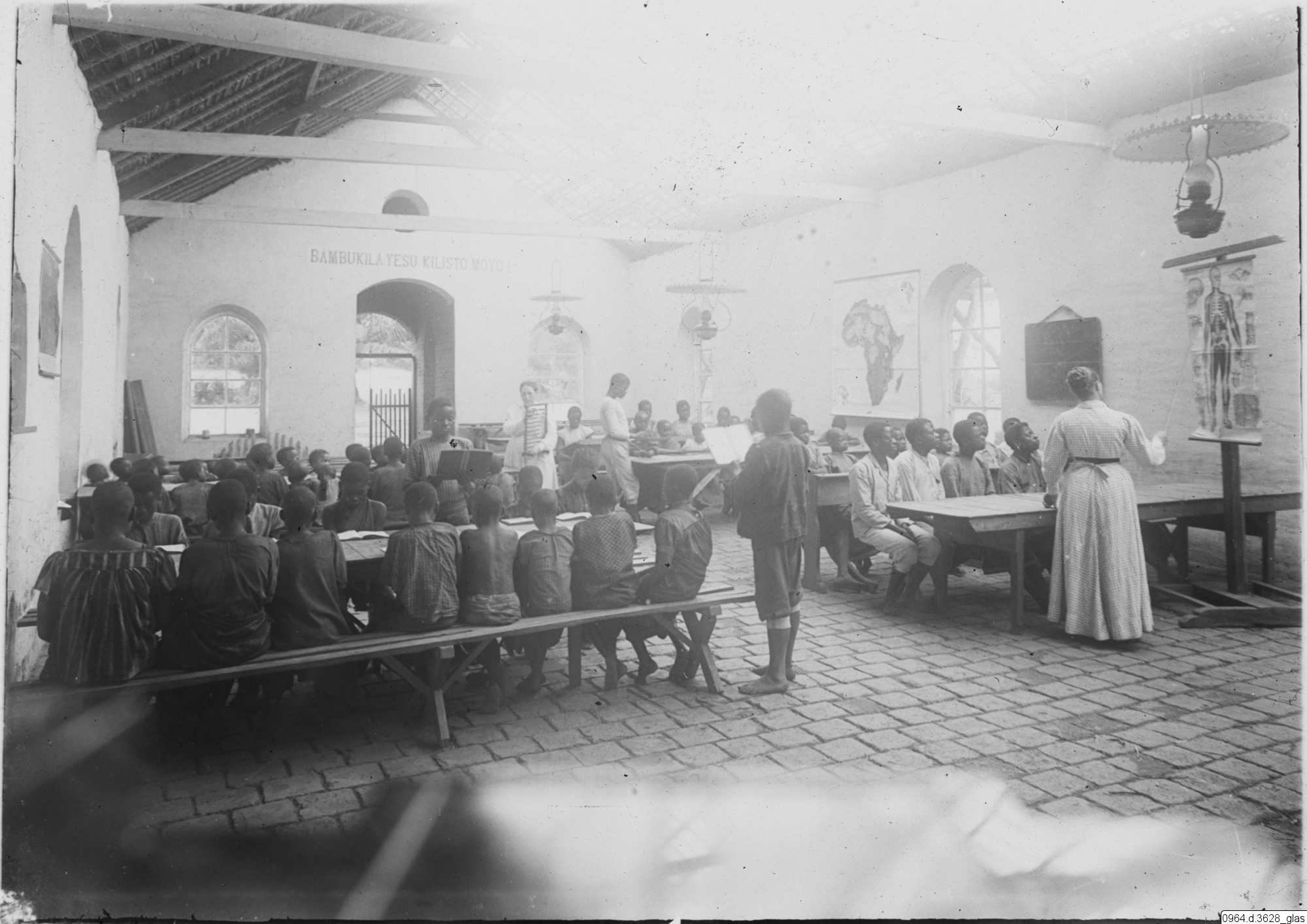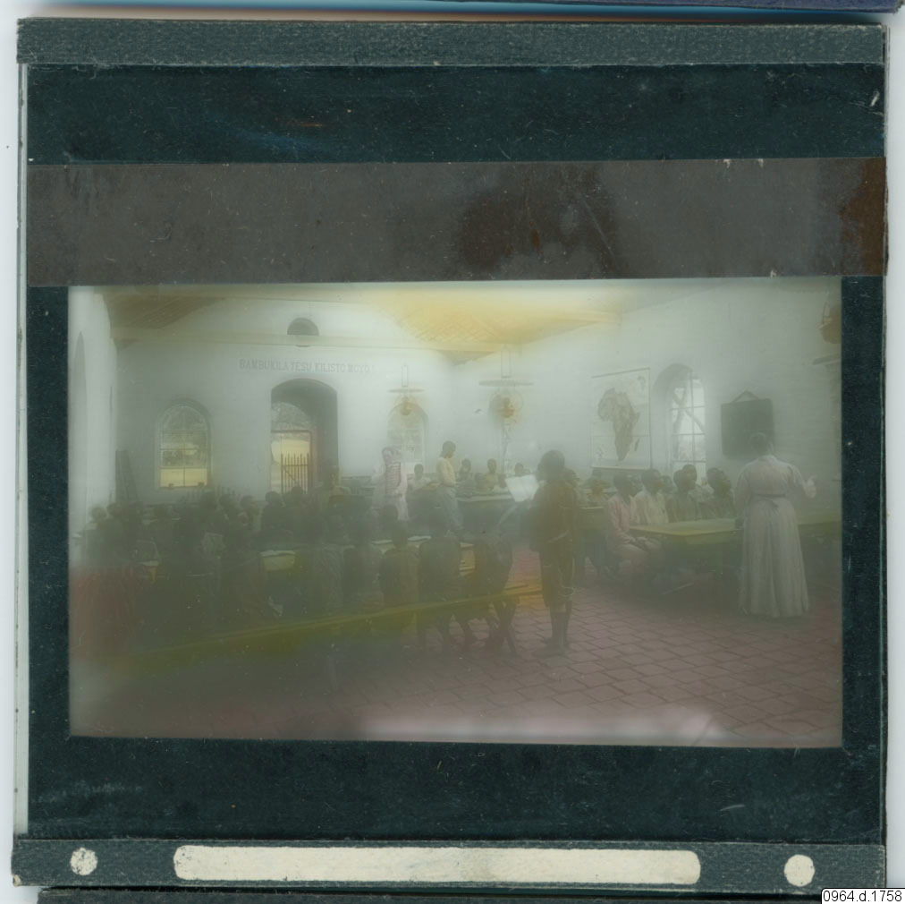 • Undervisning i kyrkan. Mukimbungu. Grästak under omläggning.