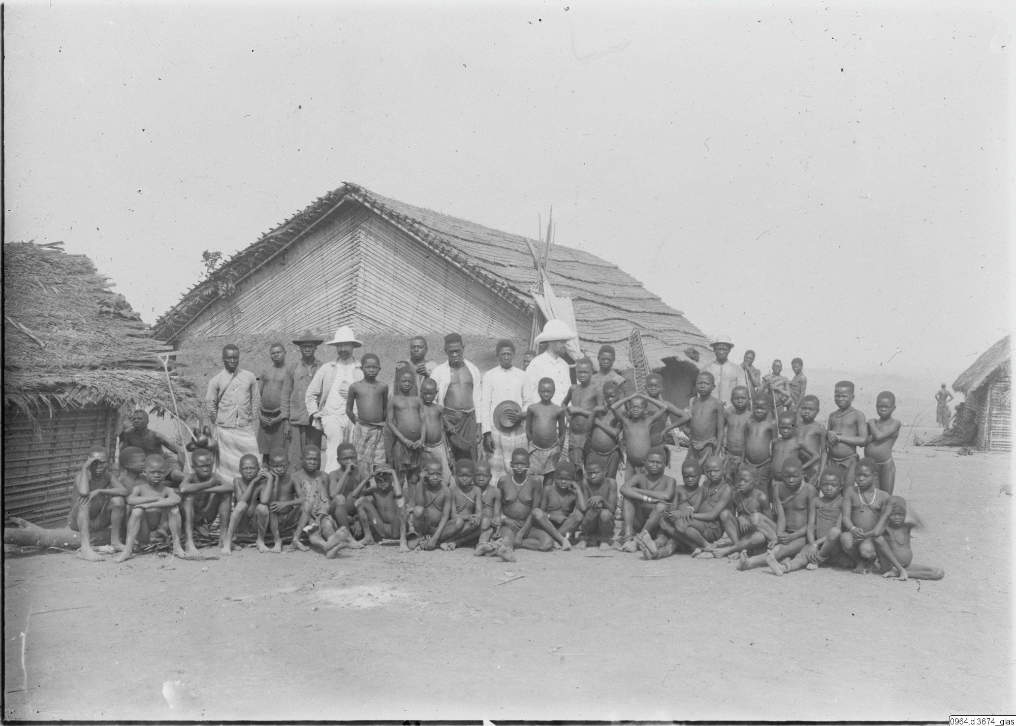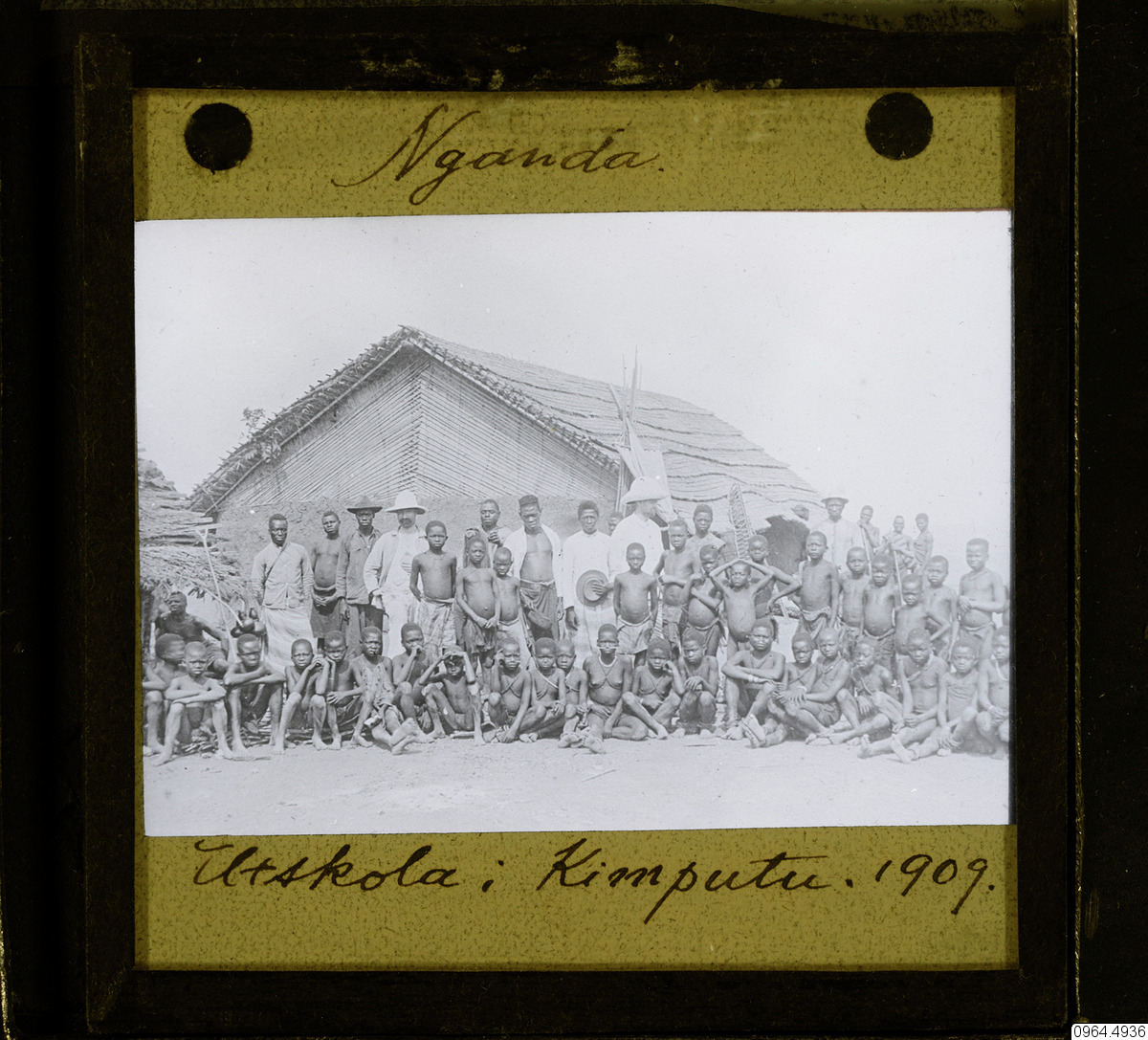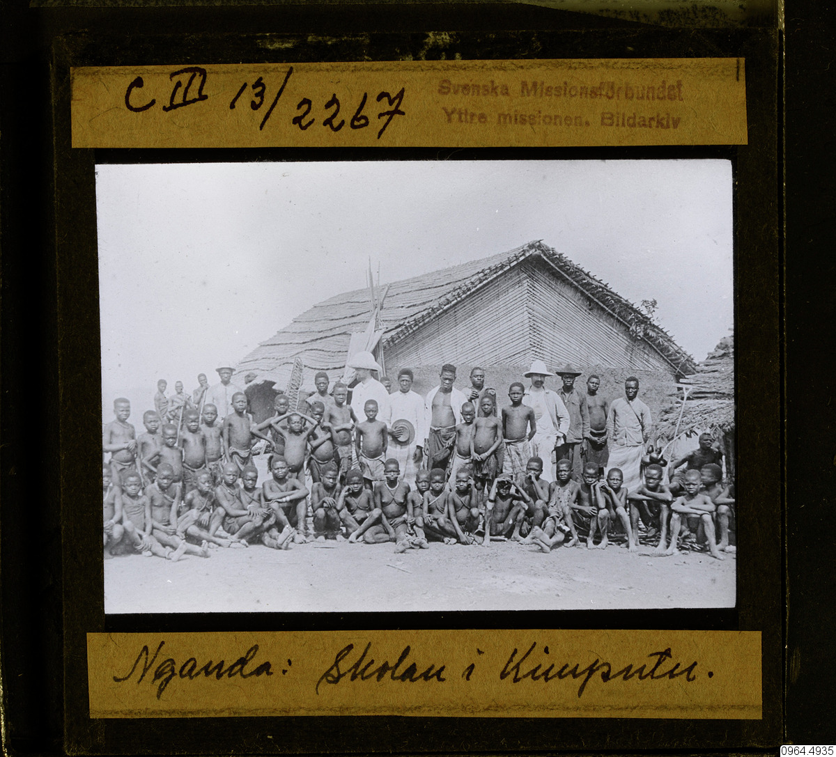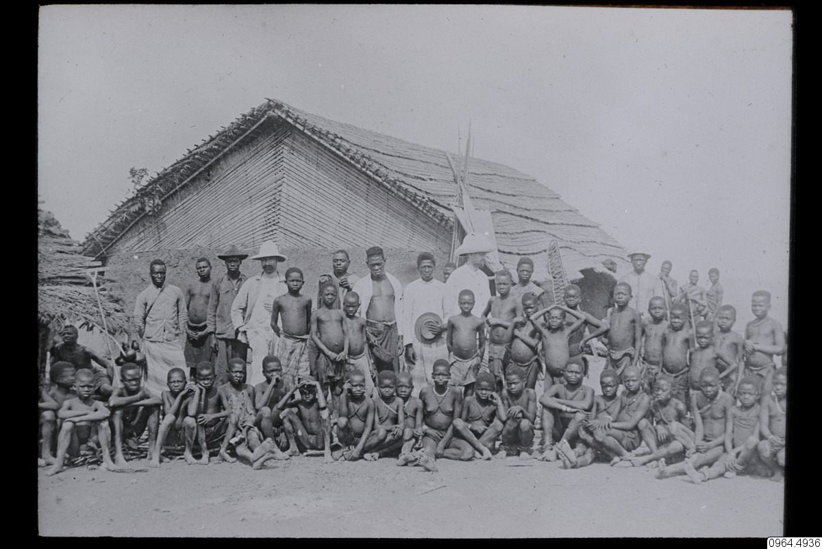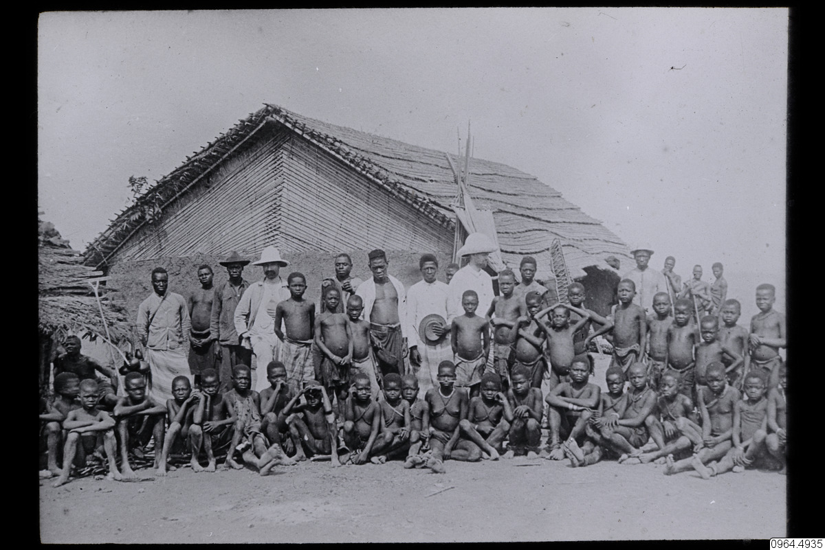 skola, missionärer, byggnad, gruppbild, folksamling, föremål, hus, hyddor, fotografi, photograph