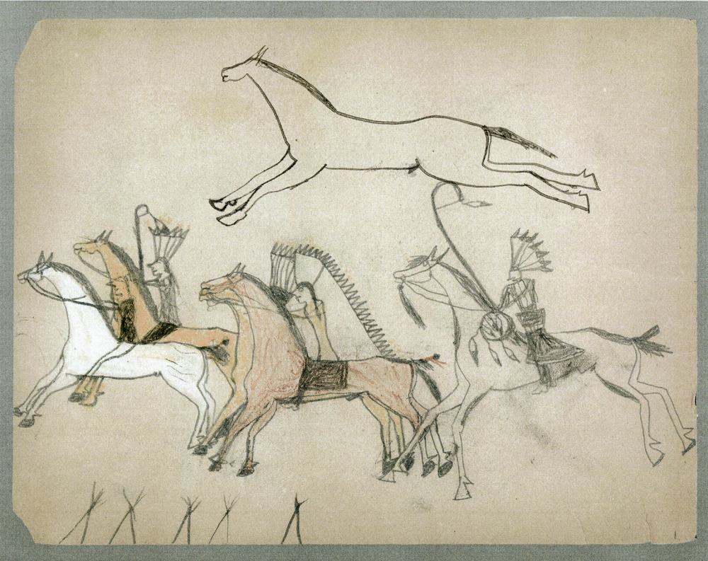 • Krigarna återvänder hem, teckning av Alvan Good Boy. Carlisle ind. school.