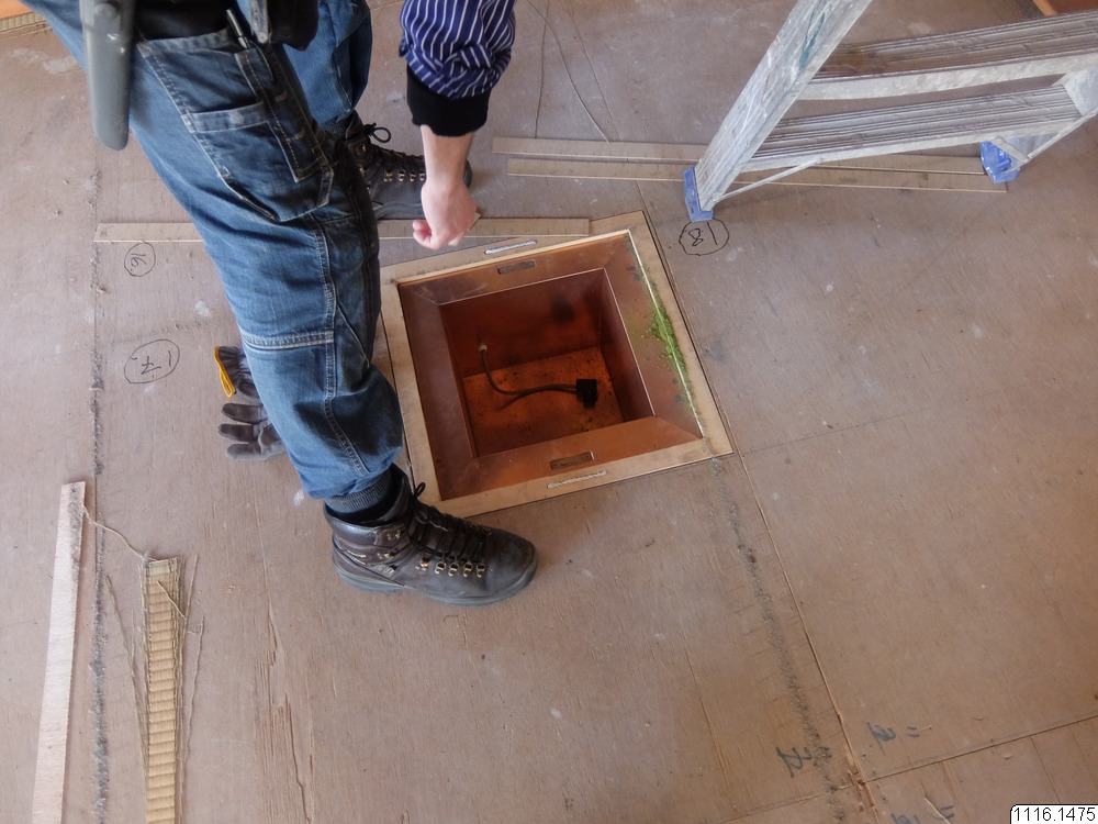 • Förberedelser inför renovering av tehuset 2015. Joakim Fahlén klättrar ner under tehuset för att ta bort isolering som ändå inte gör någon nytta.