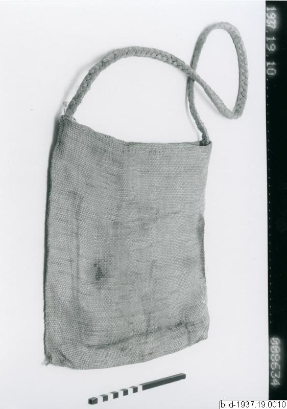 Bandet av textil, väskan av fibrer, fläckig. Längden med banden är 74 cm.