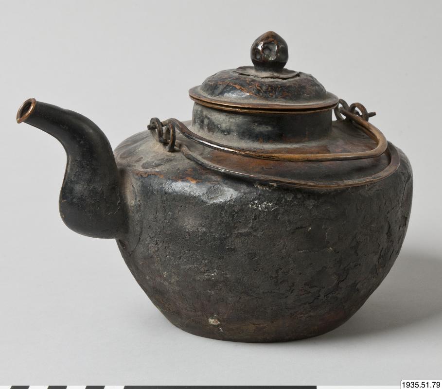 "Ti ri (tem). An old battered-up copper tea kettle as found in every Tebbu home. The good ones are used when guests arrive but for every day use these poor ones suffice. Made usually in Sunpan Sze." (Carlson,1930)