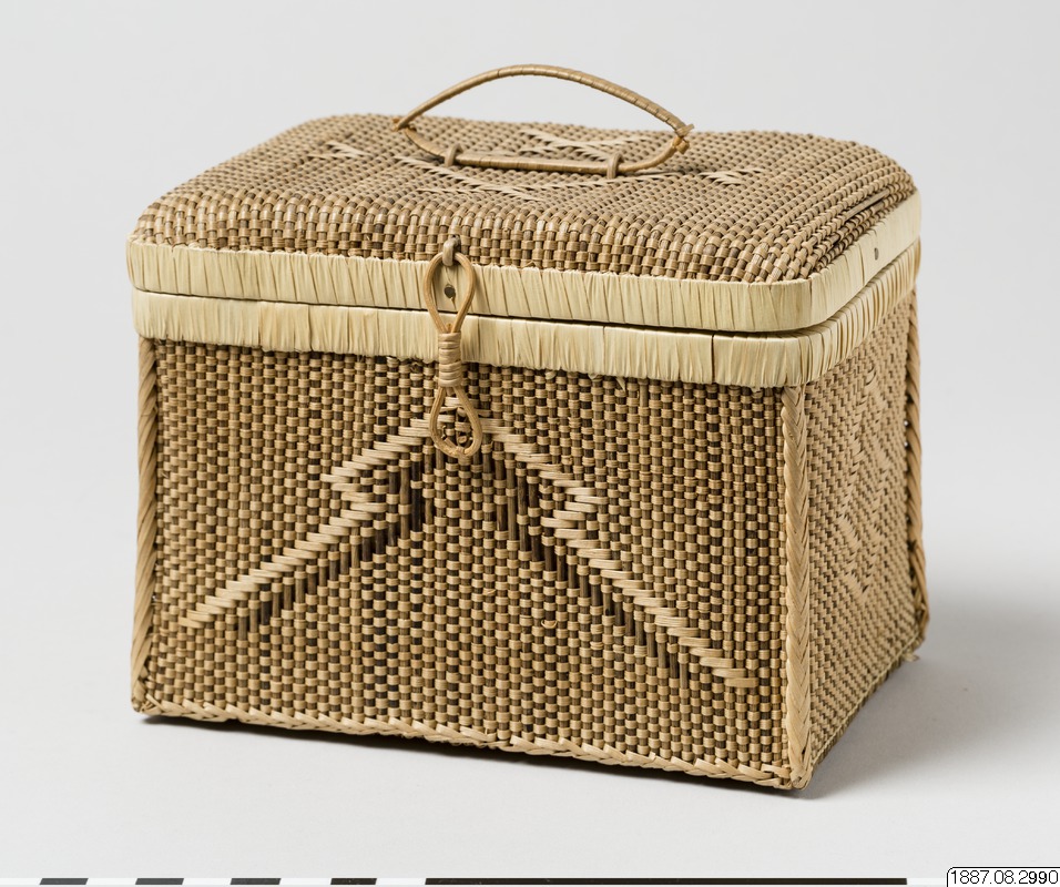 Föremålet ingår i en samling (1887.8.2955-3022) av "folkligt hantverk", bl a korgarbeten, där flertalet är gjorda i wisteria (blåregn), kallad fuji på japanska. Dessa inköptes i Minakuchi av Hjalmar Stolpe.