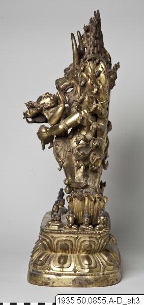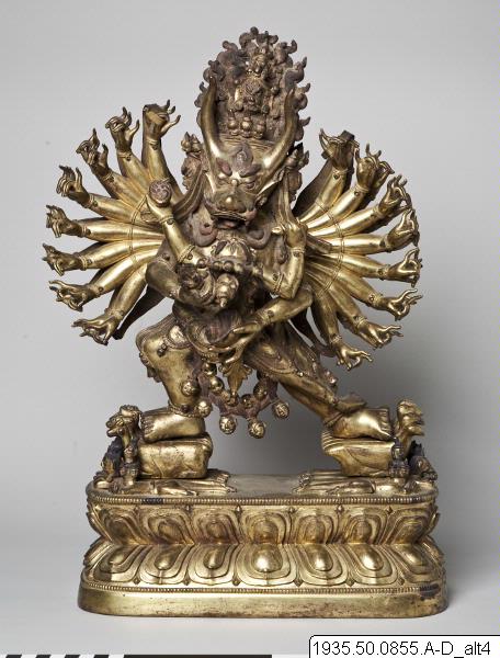 "Gudabild av förgylld brons. Föreställer Yamantaka." (HBE)