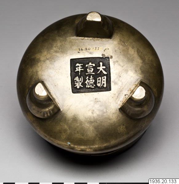 Enligt Per-Olow Leijon är det en Xuan De-stämpel (1426-35), som dock är falsk. Karet är tillverkat i slutet av 1800-talet.