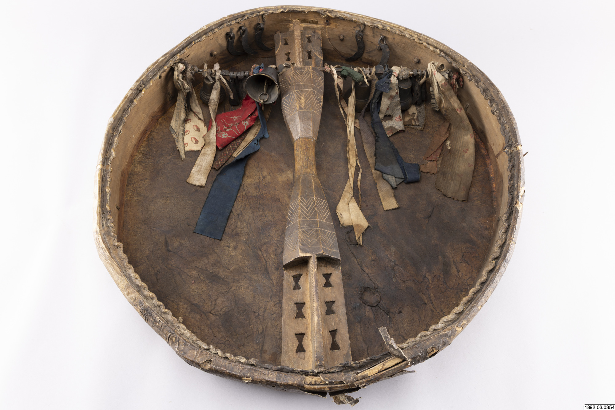 Function: Used in shamanic rituals/séances among the Chakass of the Minushinsk area, upper Jennisey basin, Southern Siberia. A short, and far from complete description of the drum could read like thi...