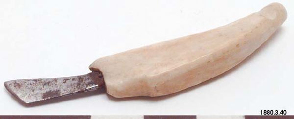 • Liten kniv att begagna vid finare skinnarbeten. (generalkatalogen)