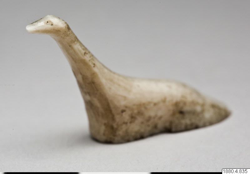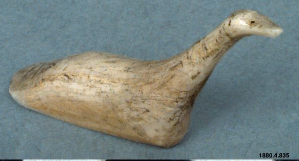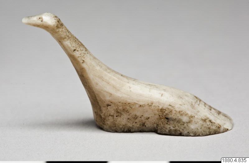 • Skulptur föreställande en fågel. Kroppen hög, lång och smal. Halsen lång, avsmalnande uppåt. Huvudet uppåtsträckt med inskärningar för ögonen.