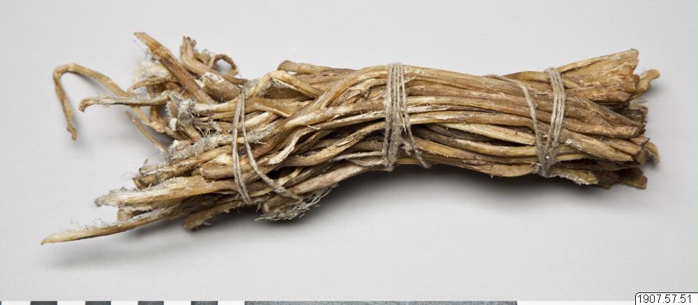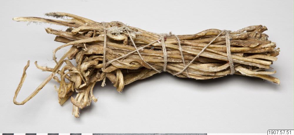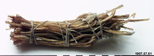 Ett knippe fårsenor bestående av ca 30 senor. Dessa användes enligt Högberg sammankokt med korn eller klövar att förfalska opium. Användes även vid sadelmakeri och till andra ändamål.