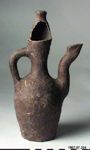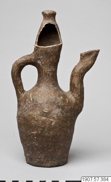 • Kruka med handtag och s-formad pip.