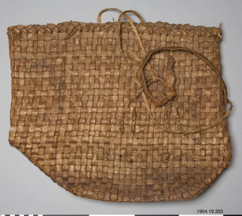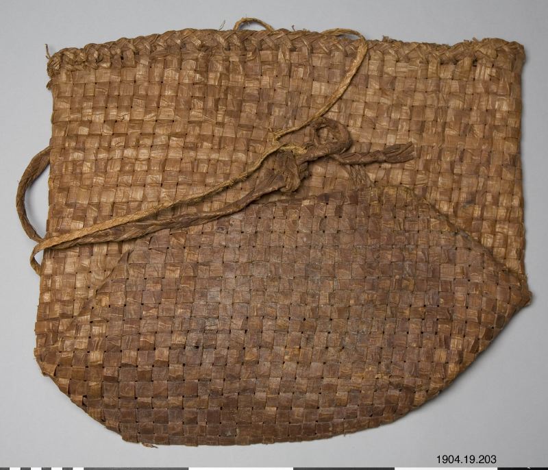 Enligt generalkatalogen är detta en korg, brun, för fisk. Proveniensen är angiven som British Columbia. Exakt proveniens är svår att fastställa då dessa korgar användes av många av indianfolken längs Nordvästkusten. Den är en typisk odekorerad brukskorg, flätad av grövre cederbarksfiber. Med sitt praktiska syfte har stor omsorg lagts vid att korgen skall vara stark och den är hårt och starkt flätad./JG