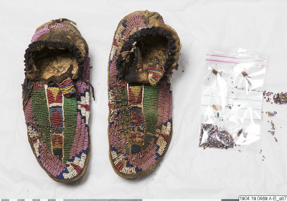 • Mockasiner ett par, broderade med pärlor (generalkatalogen).