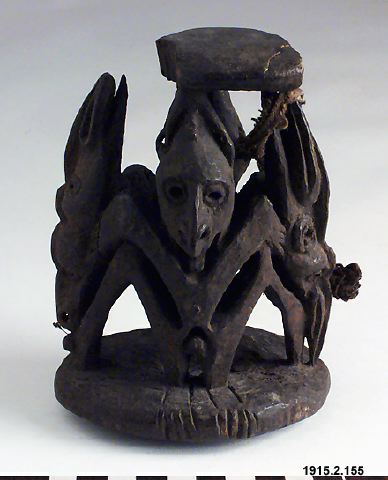 Uppbäras av fyra fantastiskt skulpterade figurer, vars armar och ben 'gå i ett. Två ha manliga.könbor gan. Röjd:16,5-cm. Bredd: 11,9 cm. [ocr]