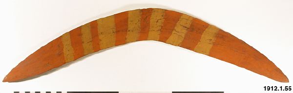 av samma typ som föregående, men rödmålad samt försedd med gula tvärband. När en ity,t., lik bumerang med stor fart roterar fram ge.t dom luften, ser den 'ut som et,,färgat hjul, som med förtjusning betraktas avinföding.e arm. Användes också mest vid dansfester och lekt • Sunday Inlands i ' [ocr]