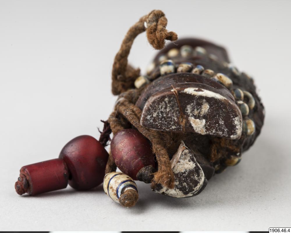 Nr 2. Nikisi 1906.46.4 insamlad av Karl Edvard Laman. Donerad till Nordenskiölds etnografiska missionsutställning. Fernissan påförd av Laman själv. De vita handskarna Jag står inför ett föremål av e...