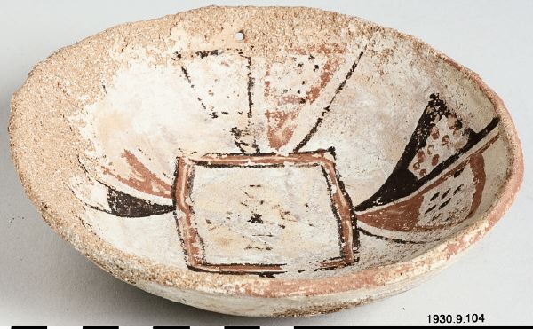 • Skål Lika som nr.94. Som föreg. med ge ()metriska ornament. Diam 16 cm. Höjd 4 cm. [ocr]