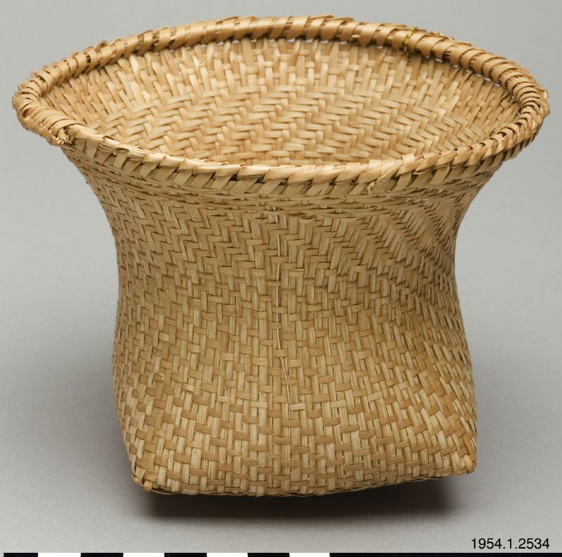 • Ljus nätt flätad korg med fyrkantig botten som är rundad. Öppningen bredare än bottenbredden. Mycket välbehållen och jämnt vävd.