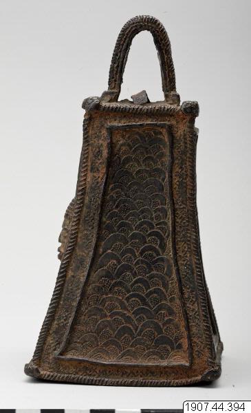 • (22) av brons, ornerad. Höjd: 17.5 cm. Bredd: 8.8 cm. Benin [ocr]