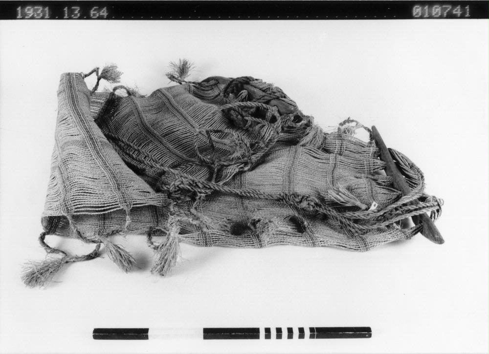 Enligt generalkatalogen: Hängmatta. Flätad av säv. Sammanhållen av 11 tvärgående flätningar. Tofsar i kanten. Naturfärgad. Båda ändarna hopbundna med snören.