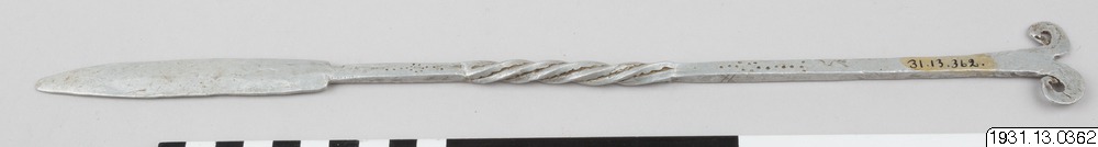 • Enligt generalkatalogen: Kastpil. Av vit metall.