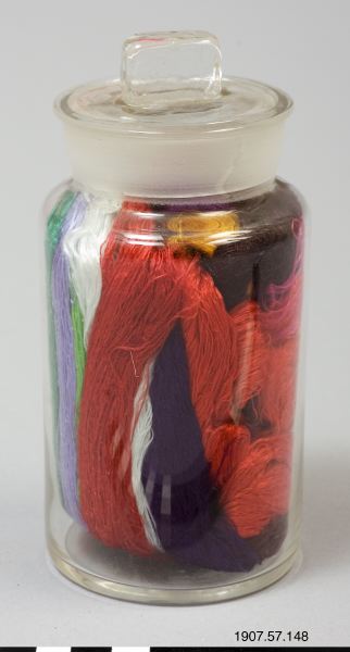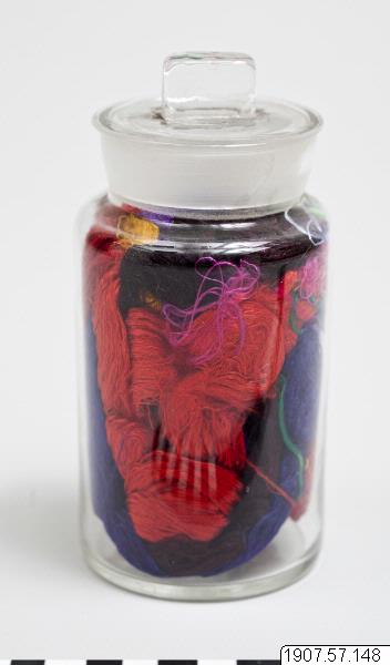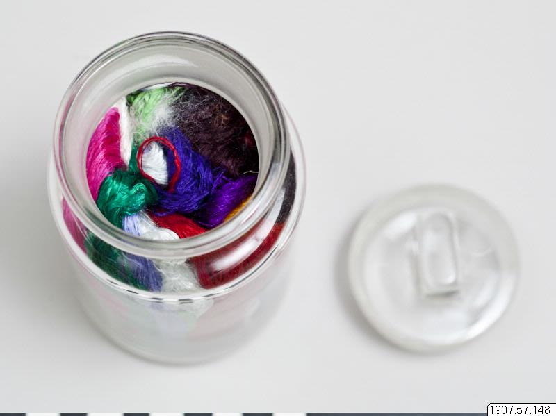 • Silkefiber färgat och berett. Silket ligger i en glasburk med lock. Måtten gäller glasburken.