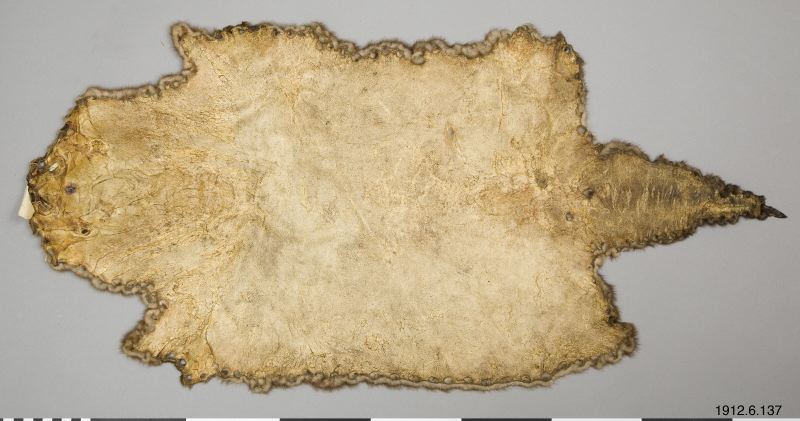 • Enligt generalkatalogen: Utterskin. (Lutra) varav bälten tillverkas.