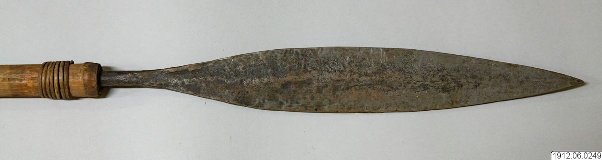 "The spears of the swamp people are long and thus differ from all adjacent mainland tribes. Central and South African spears seldom exceed male height, and both baushi, bawemba and babisa spears hardl...