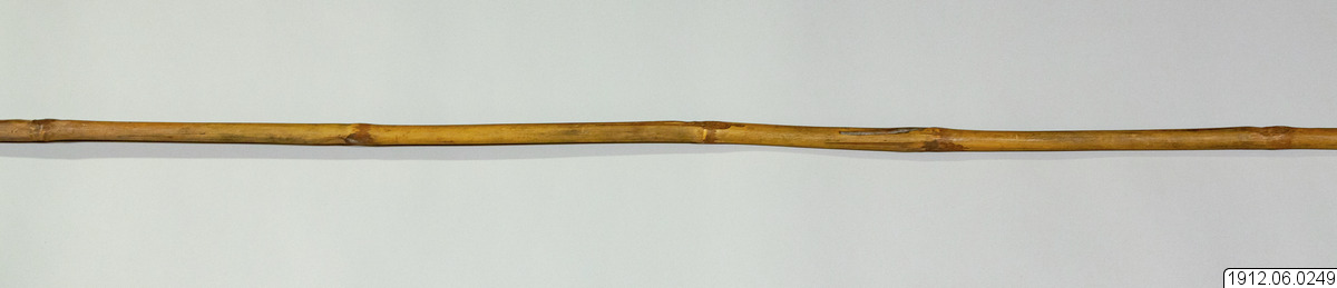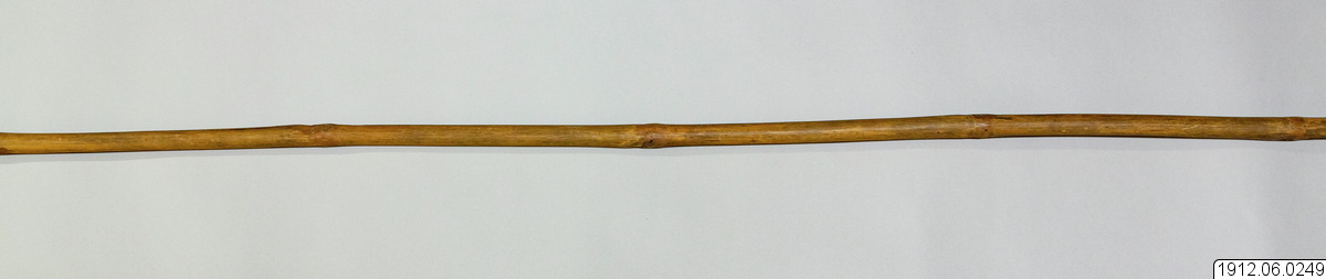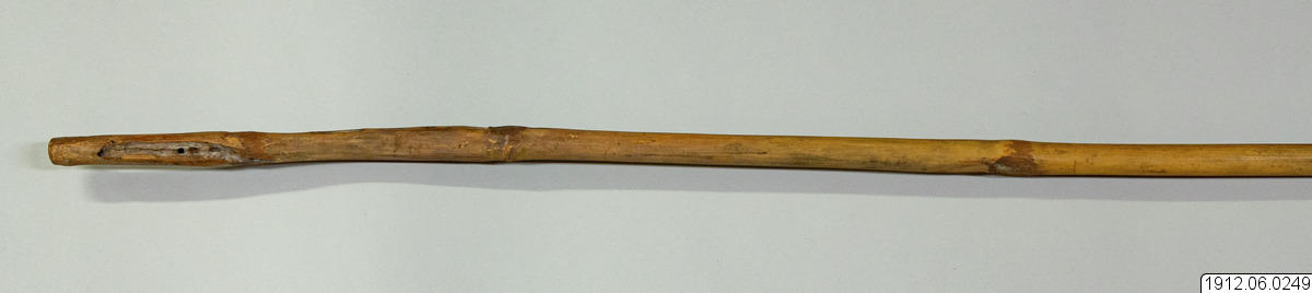 "The spears of the swamp people are long and thus differ from all adjacent mainland tribes. Central and South African spears seldom exceed male height, and both baushi, bawemba and babisa spears hardly reach this length. Babisa, however, exchange long spears from batwa, which they use when hunting in the swamp. The short spears, which the inhabitants of the mainland make, have wooden handles and are always equipped with a heavy iron dipping shoe at the rear end. The spearhead is made of iron. It is lanceolate in shape with very long and stepped pincers, which are often inserted into the shaft only for a quarter of its length. To increase the weight and strength of these short throwing spears, which are intended for close use, the shafts are generally adorned with a mass of rings and fittings of copper, brass or iron; often the shafts are completely wrapped with metal tape. The batwa spear has a length of about 3.5 m. (Fig. 81). The shaft is made of bamboo tube and the tip consists of a 3 '—4 dm. long double-edged blade of iron, provided with a rather coarse pliers, which with almost its entire length is inserted into the shaft. The shaft is wound with bast or metal tape near the blade so that it does not split the pipe in a hit against a hard object. Batwa spears are never fitted with dipping shoes or metal fittings other than the winding above to strengthen the front end of the shaft. When a swampman is to throw his spear, he grasps it in the manner shown in fig. 82. The spear rests on the inside of the left hand between the thumb and forefinger; the right hand encloses the rear end of the spear. In Fig. 83 we see the spear thrower during the throw and in Fig. 84 his position is seen at the same moment as the spear leaves the hand. Despite its fast speed, the spear has been included in the picture and can be seen in a horizontal position just in front of the spear thrower. A similar way of throwing spears occurs in some parts of the Congo, and it is also reminiscent of that of the Australian Negroes, although they generally use throwing woods to increase the force of the throw." (pp. 186 - 190, von Rosen, 1916, translated from Swedish).