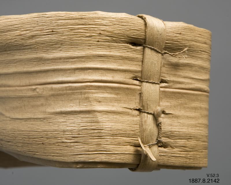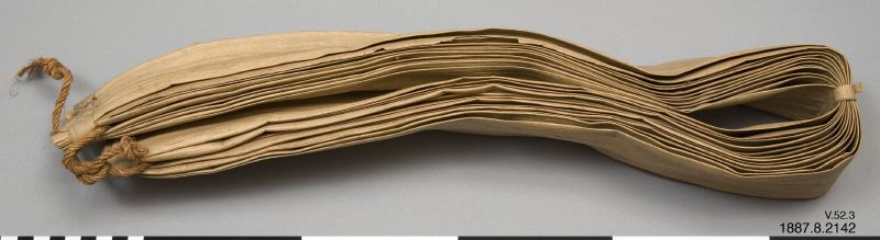 • Bälte av pandanusblad. Bladen buntade och hopsydda i kortändarna. Hålls samman av ett växtfibersnöre.