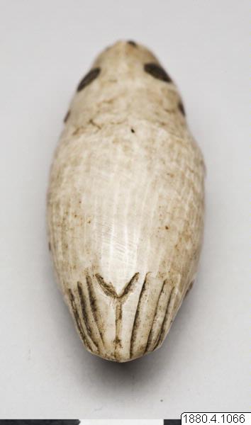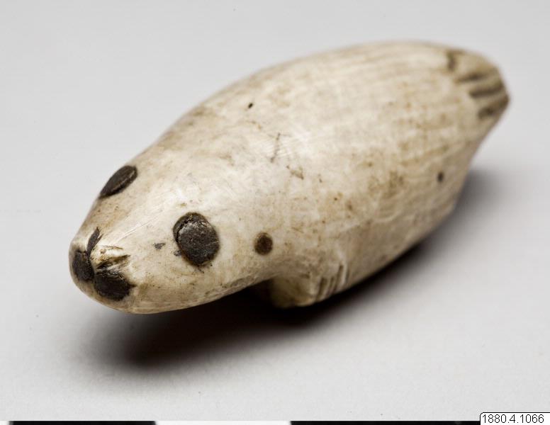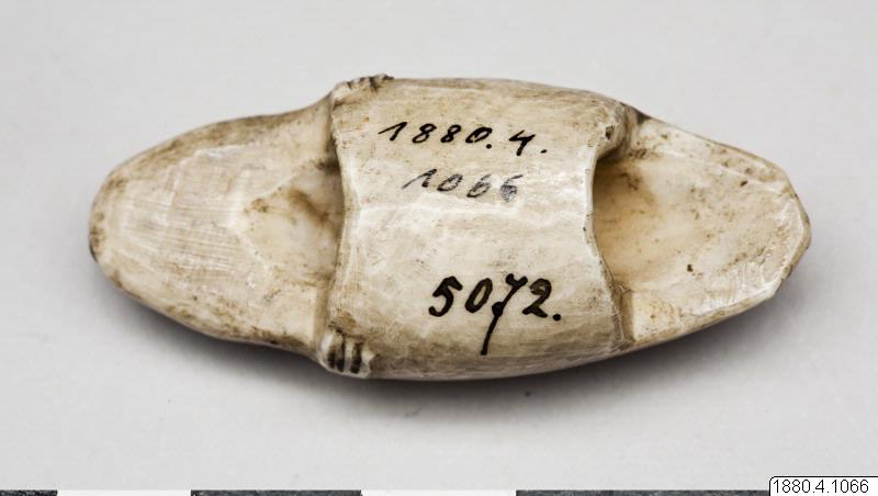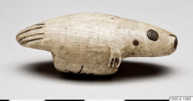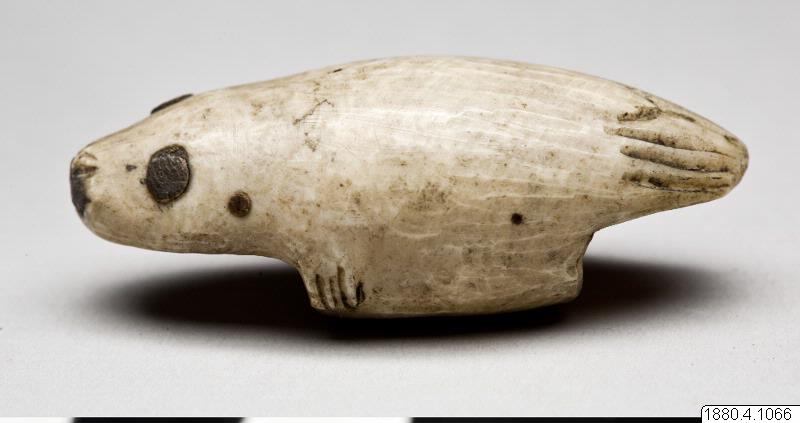 Benknapp till bärrem. Föreställande sälfigur. Generalkatalogen