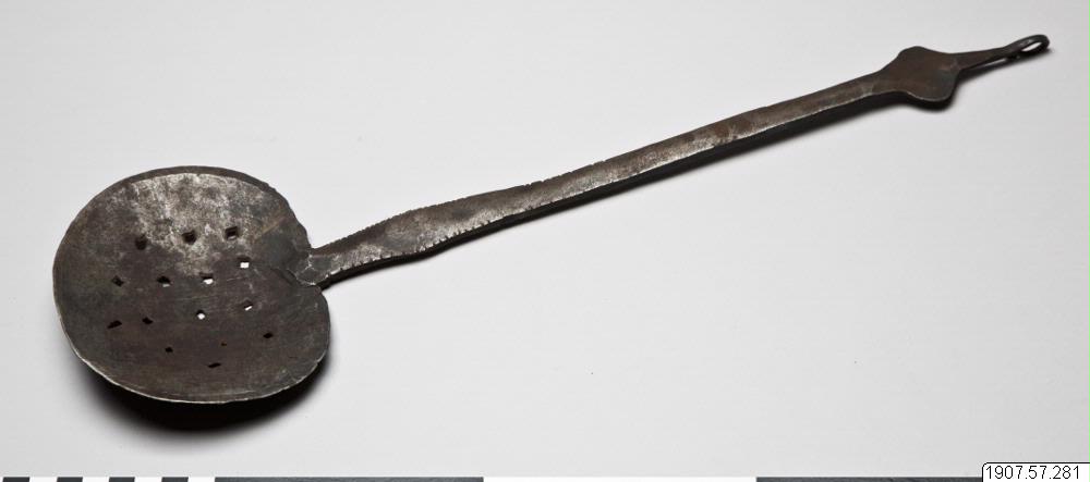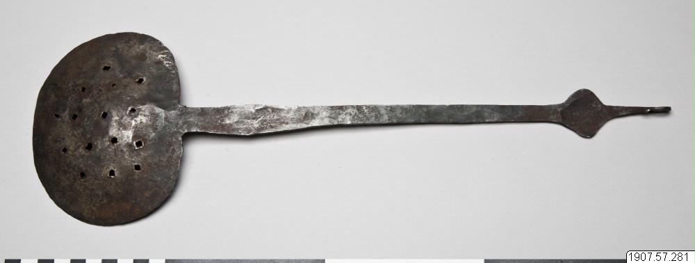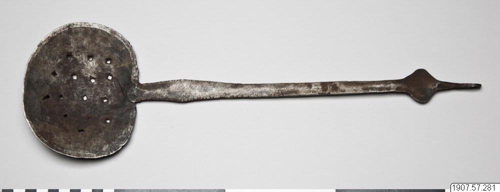 (nr 286) ett stycke. (generalkatalog) En sil eller hålslev med skaft. Själva silen är oval till formen och har 15 hål. Skaftet avslutas i en ögla. (mibo) [ocr]
