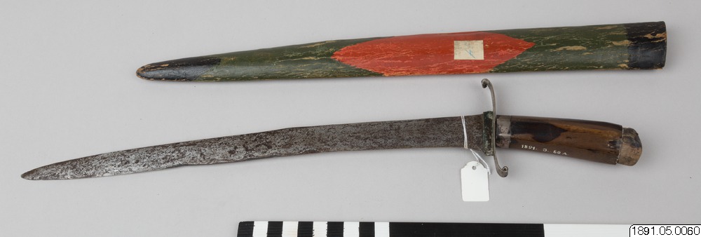 • A Javanese thrusting sword with a laminated (pamor) blade.