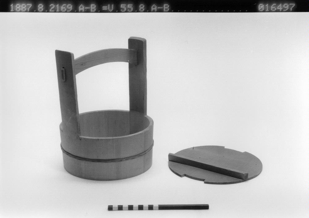 Delsamling 1887.8.2162-2486 är inköpt i Yokohama och består av ämbar av olika slag, vardagsredskap såsom kvastar, lampor, hårkammar, hårsnoddar, sminkborstar, skor mm. (PH 960503)