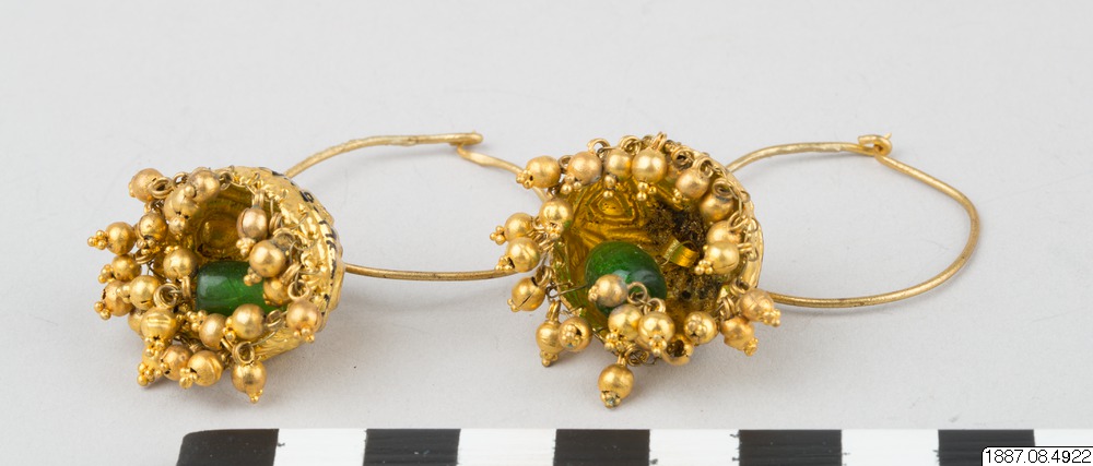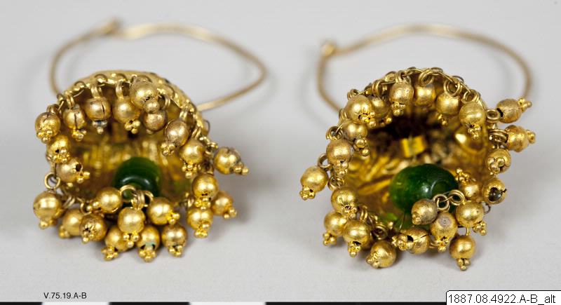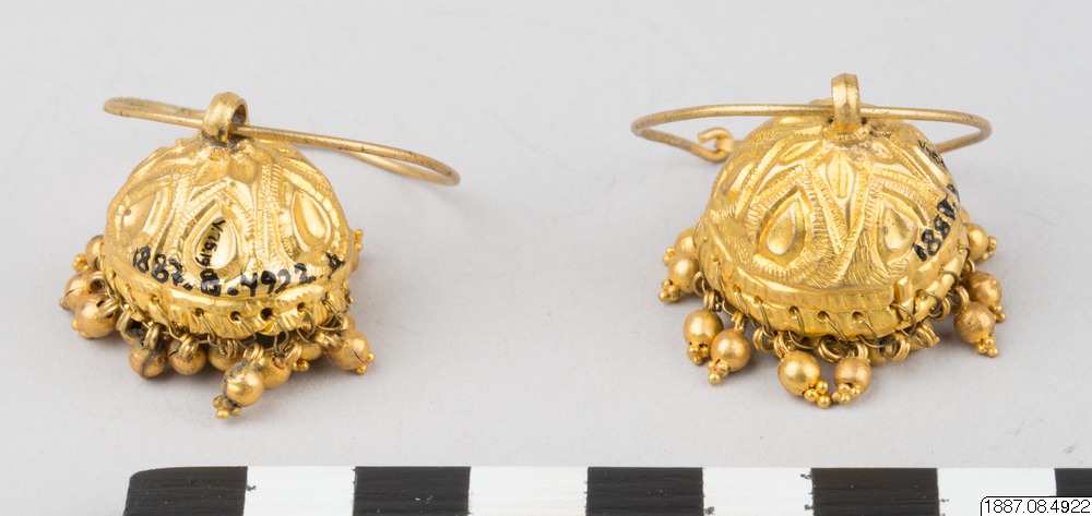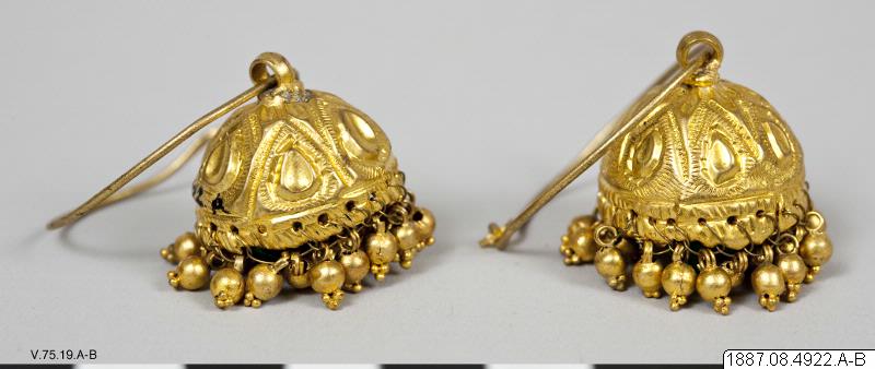 • Ett par örhängen (Jhumka) med klocklika bihang. (generalkatalogen)