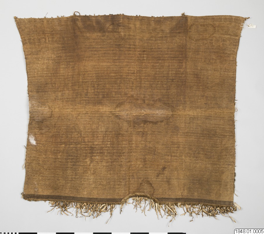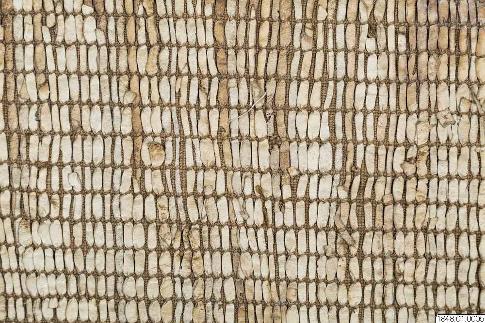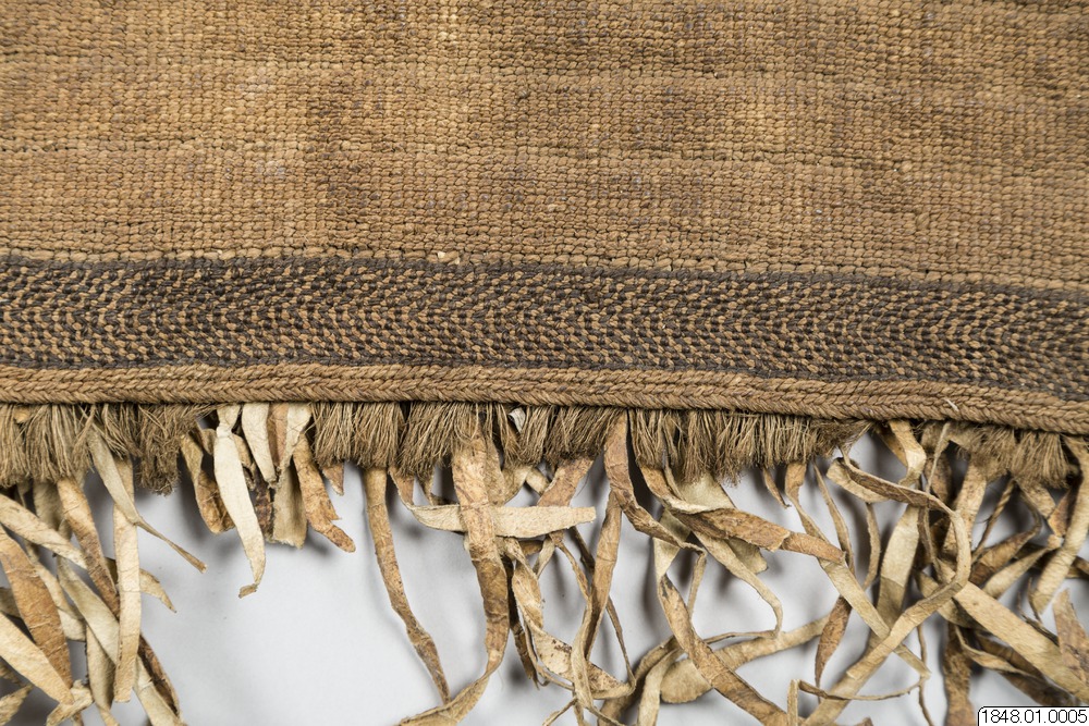 Cloak consisting of Mat decorated on one side with dogskin strips. Maori, New Zealand. (Rydén, Stig. The Banks collection, p.82)