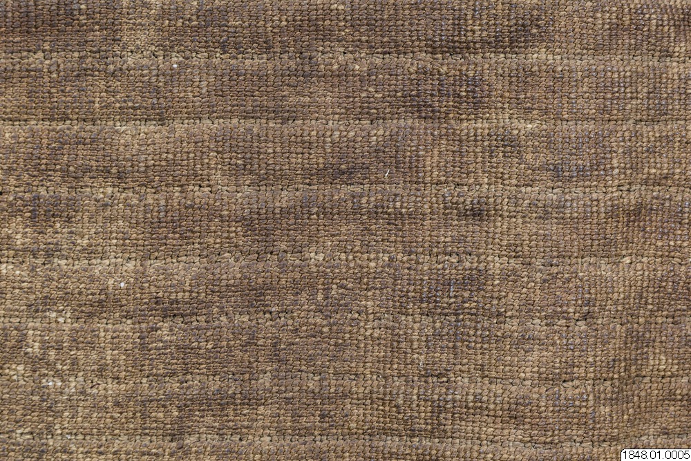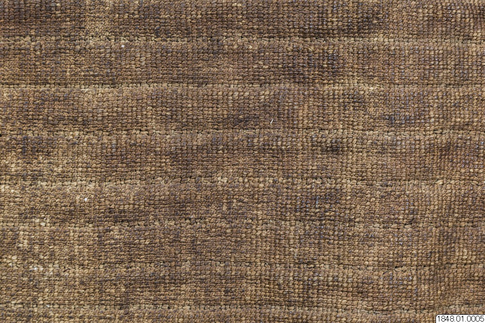 Kappa best. av en matta som på ena sidan prydes av en mängd smala remsor av hundskinn. Skinnremsornas hårbeklädnad nu helt borta. Remsornas fria ändar bildar en överskjutande frans längs nedre kanten, Under denna har flätverket en svartmönstrad bård. (Orig. nr. 1,557) [ocr]