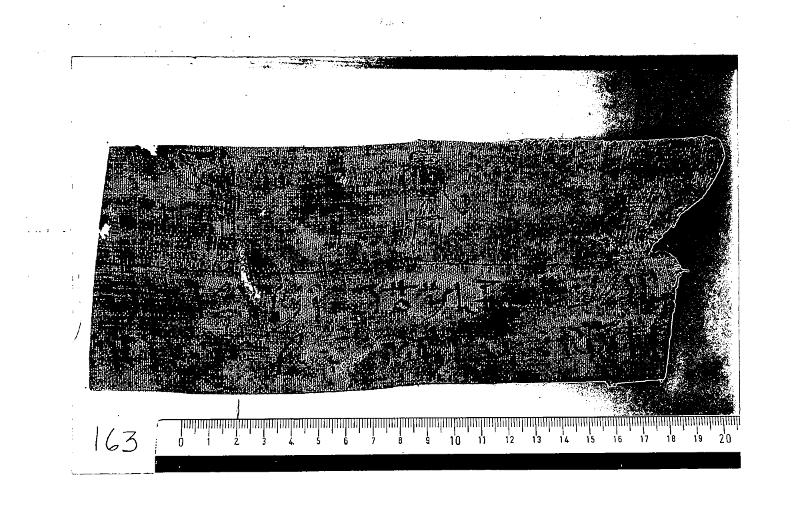 • Fragment av teckning med text i svart utskuret från s.k. papyrusrulle av lärft.