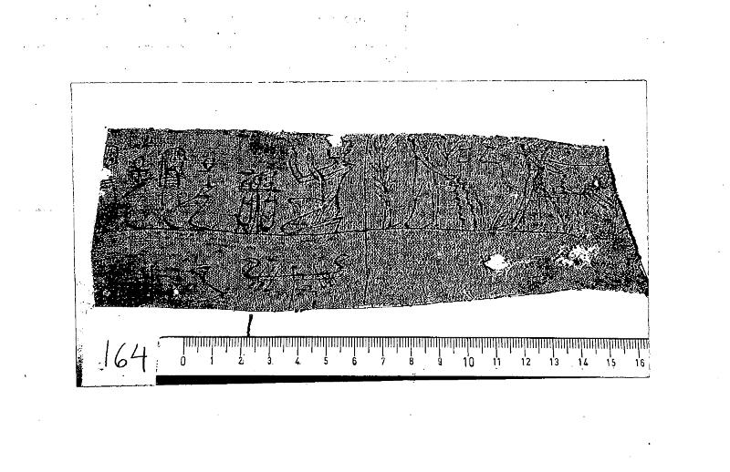 • Fragment av teckning med text i svart utskuret från s.k. papyrusrulle av lärft.