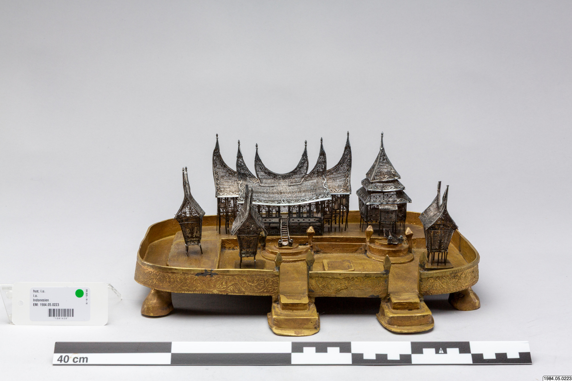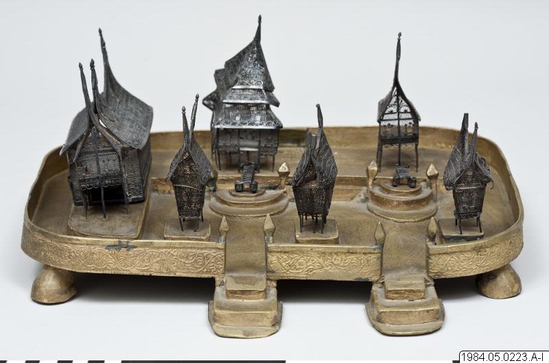 • 4. Modell av ett minangkabanhem från Sumatra. Gåva av direktör Holthuis 13 mars 1951. (utställningstext, Travellers Club, 2008)