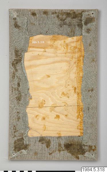 Tavla; fotografi monterat på en träbit i en ram av grå textil. Motiv: två män som delar en kanna te. Enligt tillhörande text: "Slavhandlaren Tippu-Tip. Autentiskt fotografi av Tippu-Tip och Dr Wolf taget i Zanzibar 1894 av svenske ingenjören S.E. Allgurén. Tippu-Tip (=ljudet av ett bösskott) eg. Hamed Ben Muhammed, (*1850, + 1905 i Zanzibar), var en beryktad arabisk slav- och elfenbenshandlare. Han blev ryktbar genom sina förbindelser med de berömda europeiska upptäcksresandena, som utforskade Ekvatorialafrika, engelsmännen CAMERON och STANLEY samt tyske majoren von WISSMAN. Bland hans vänner fanns även löjtnanterna Arvid WESTER och Edvard GLEERUP, som reste tvärs igenom Afrika från Stanley Falls till Zanzibar 1885-1886. Tippu-Tip:s avbild här i trappan utfördes på sin tid för Panoptikon i Stockholm och skänktes sedermera till Travellers Club av direktör Gustav von Hofsten till minne av Arvid Wester."