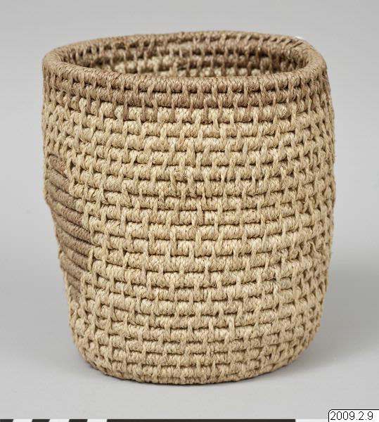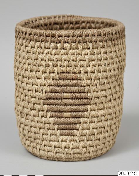 • Korg med bred bas, raka sidor utan lock. Med geometriskt mönster i mörkare färg. Liknande typ K 10 eller K 3, men högre och smalare.