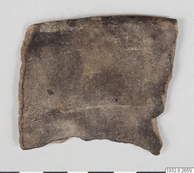 • Krukskärva. Kantstycke, möjligen av enskedformig rökelsebrännare. Odekorerad. (generalkatalogen)